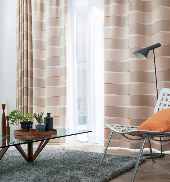 使いやすい楊柳柄の遮光ドレープ。落ち着いたモダンな窓辺を演出します。