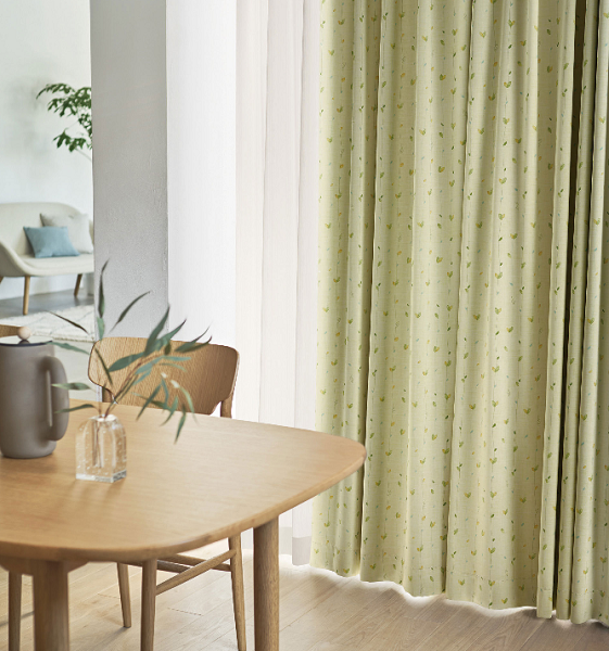 愛らしい葉っぱ柄のプリントは、機能もしっかり。遮光1級・防炎仕様です。